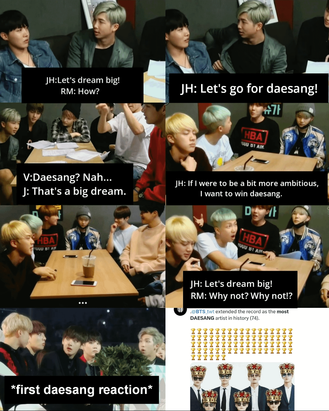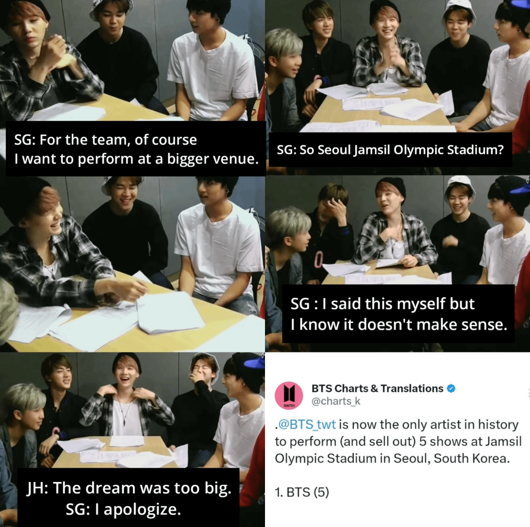 The questions were what’s your wish, what’s your goals and everything BTS said came true even the ones they thought were ridiculous… They are the biggest manifesters, the biggest dreamers that i have known. (If i have missed some moments like these please comment down below)