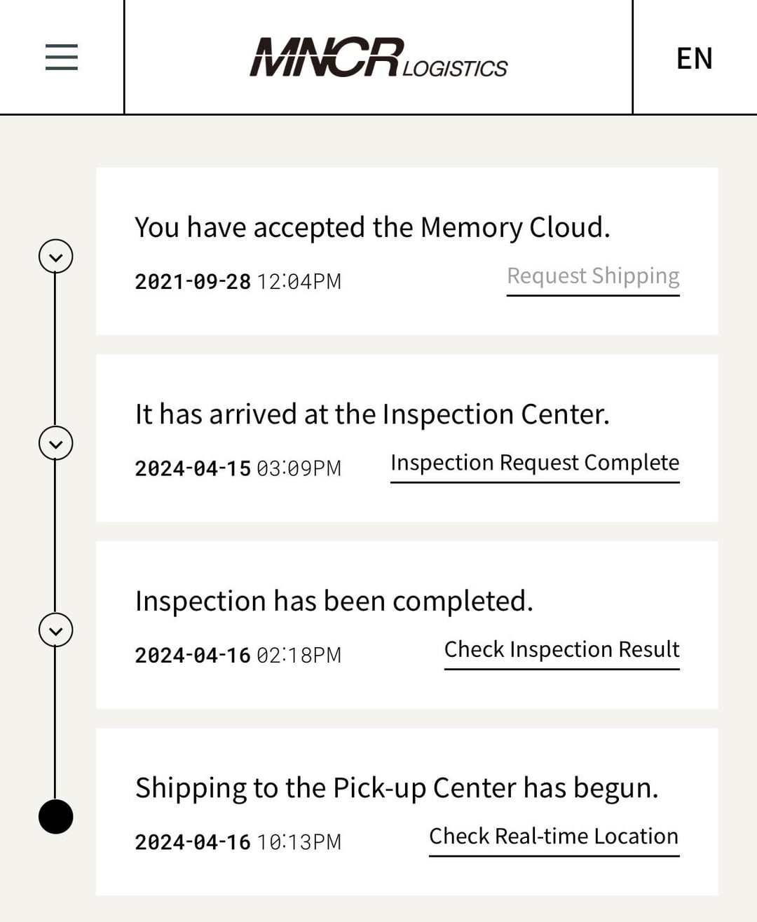 [MNCR Logistics website] Shipping started – 160424