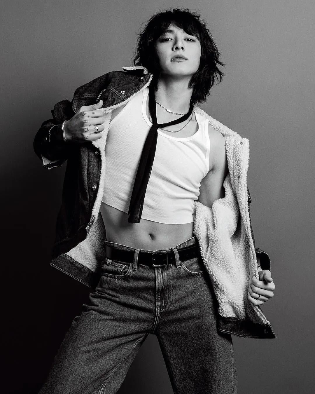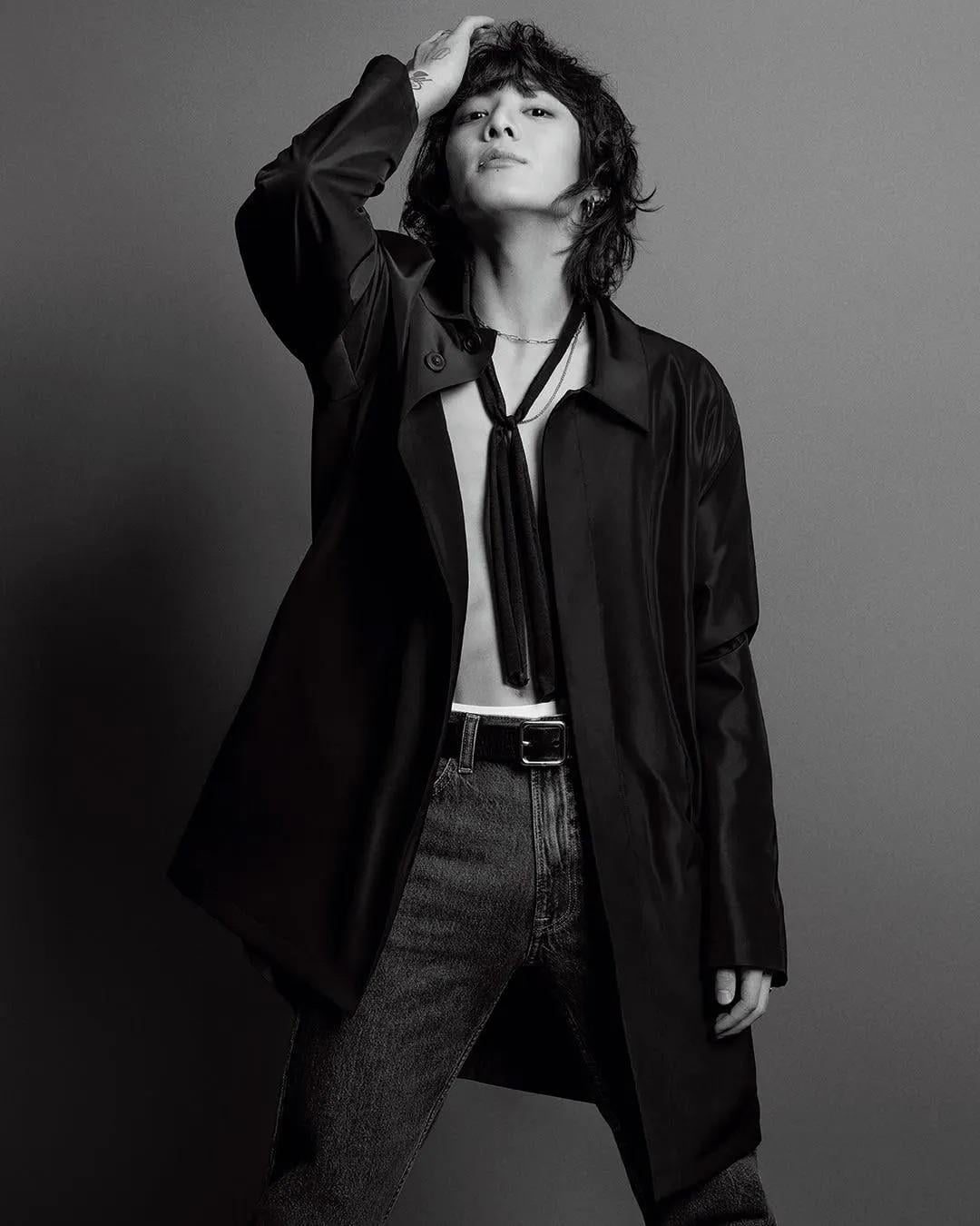 he looks gorgeous. Like a rock star. And omg his waist is tiny! Ngl I have mixed feelings about all the skin showing (I like cute kookie best) but he’s a grown man, he’s made his decision to go in a certain direction, and he certainly slays!