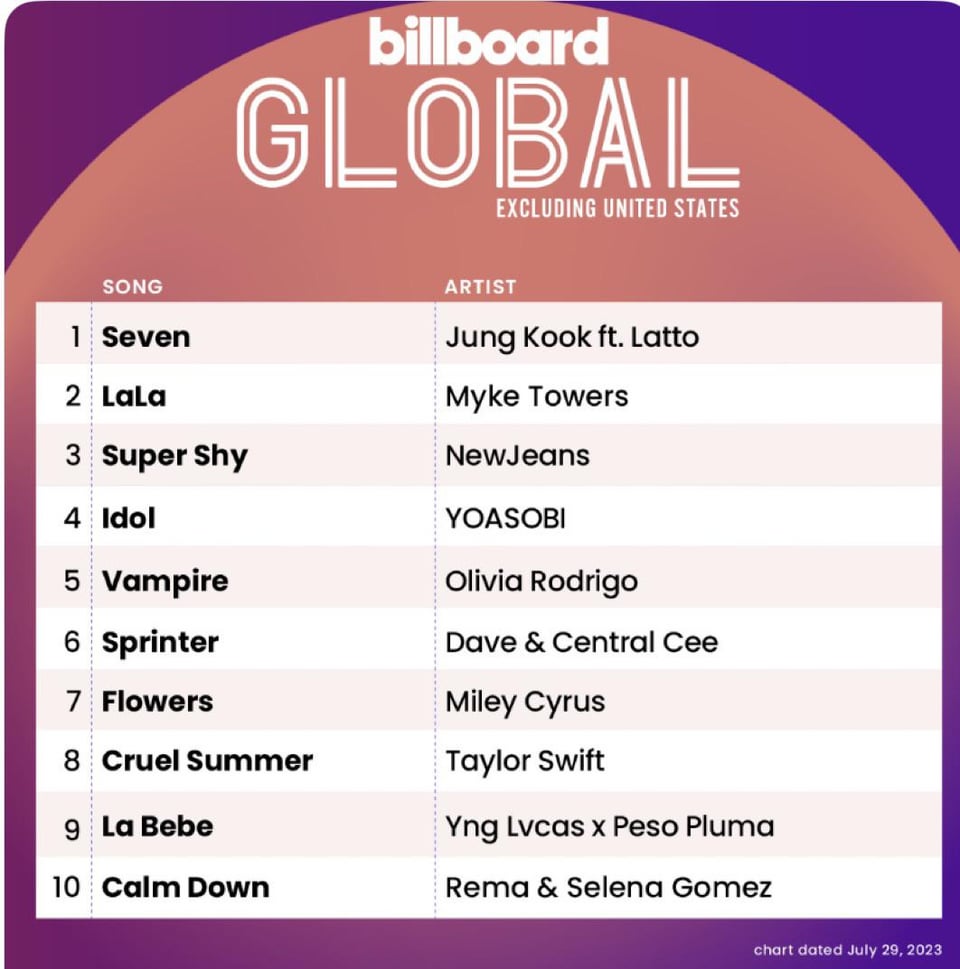 Jungkook’s “Seven” feat. Latto debuts at #1 on Billboard’s Global 200 and Billboard Global Excl. US Charts – 250723