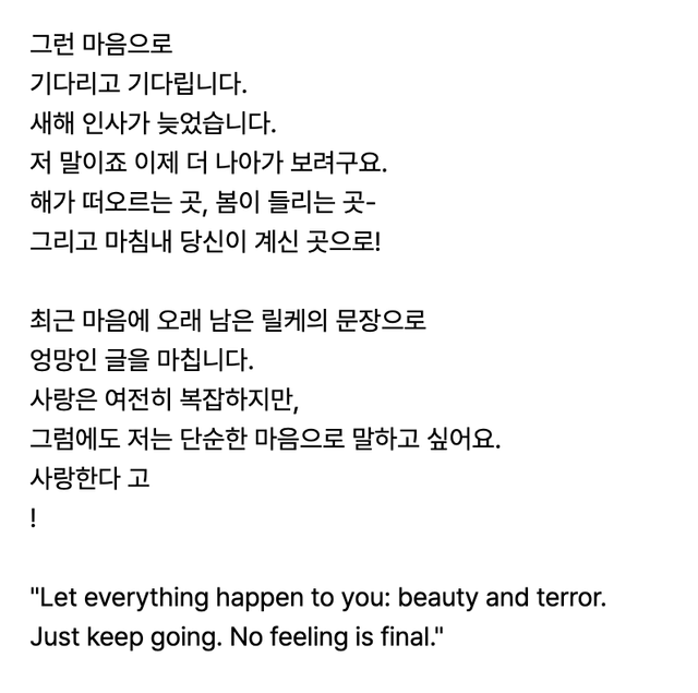 thank you for loving us joon, for waiting, and for persisting despite everything. i’m very much looking forward to meeting you and the rest of the members again this spring.