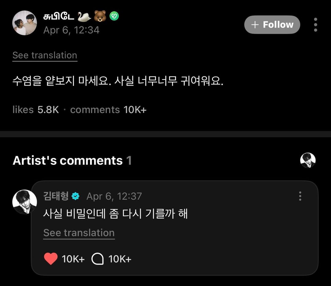 Taehyung Weverse Comments (3) 060426