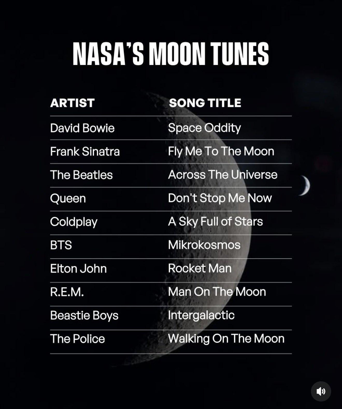 April 10, 2026 shareThe News Article: NASA Artemis II ‘Moon Tunes’ playlist goes viralPubity Instagram Post
