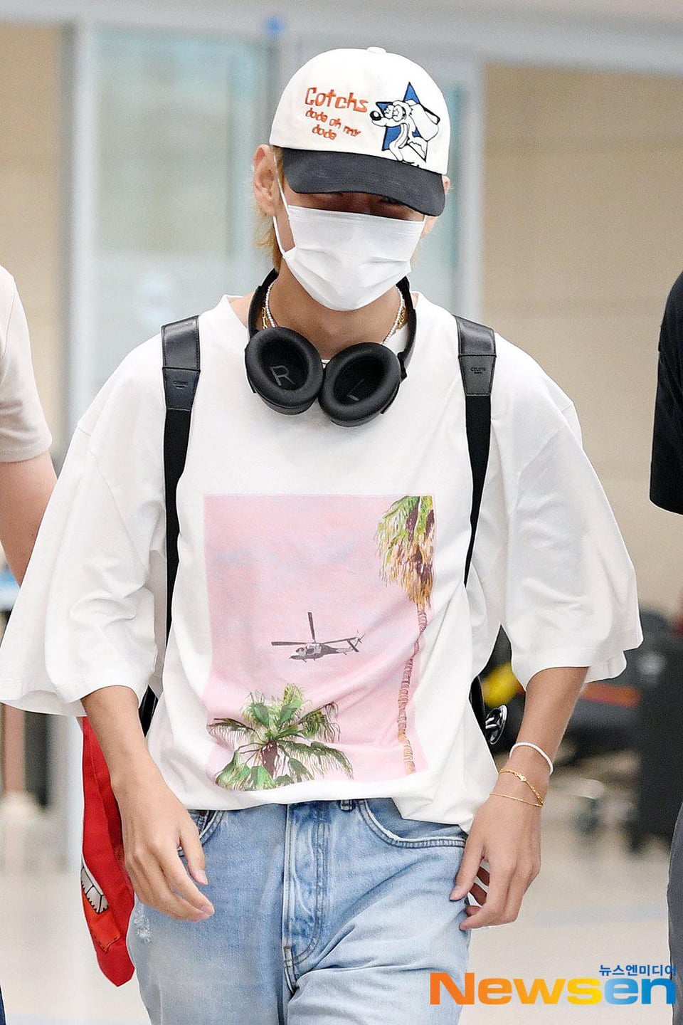 He looks like he’s auditioning for the role of Malibu ken! Haha cute vibes all around. And what on earth is his cap trying to say I cannot understand. Dada oh my dads?