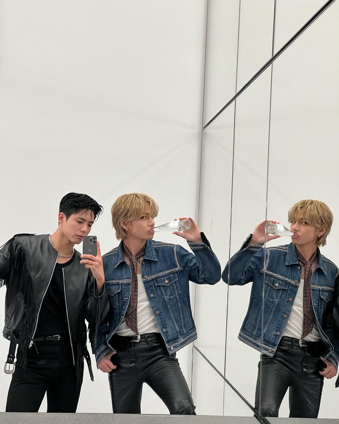 [post link](https://www.instagram.com/p/CwffivIPn5g/?igshid=MzRlODBiNWFlZA==)tae’s duality between both pics hit me like a truck. but awwww his smileee 🥹🥹🥹