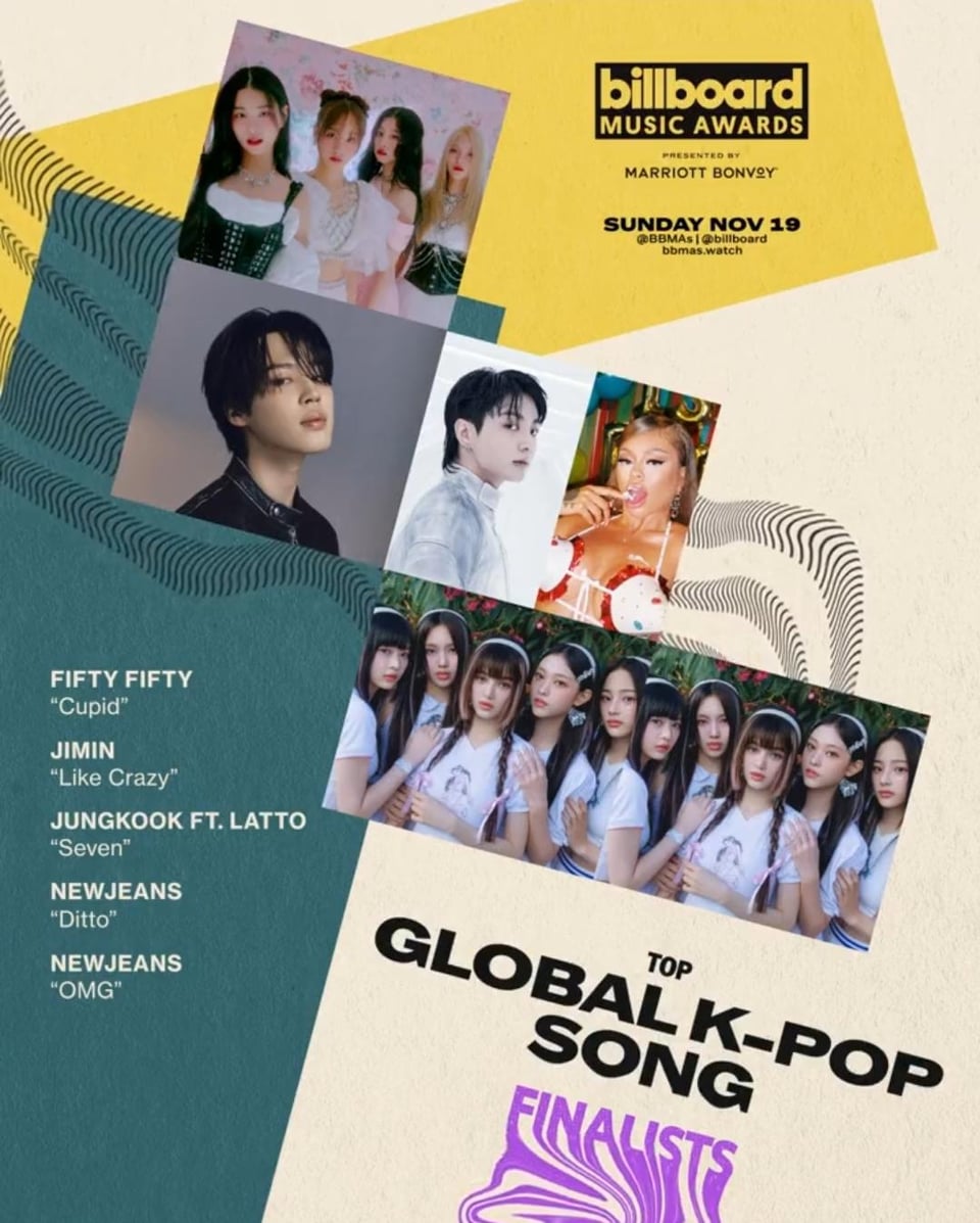 Edit: Looks like the only non-kpop category with BTS in it is [Top Selling Song](https://twitter.com/chartdata/status/1717566957614964933?t=-cGter33_G4TivLxDJov1Q&s=19) with Jimin’s ‘Like Crazy’.
